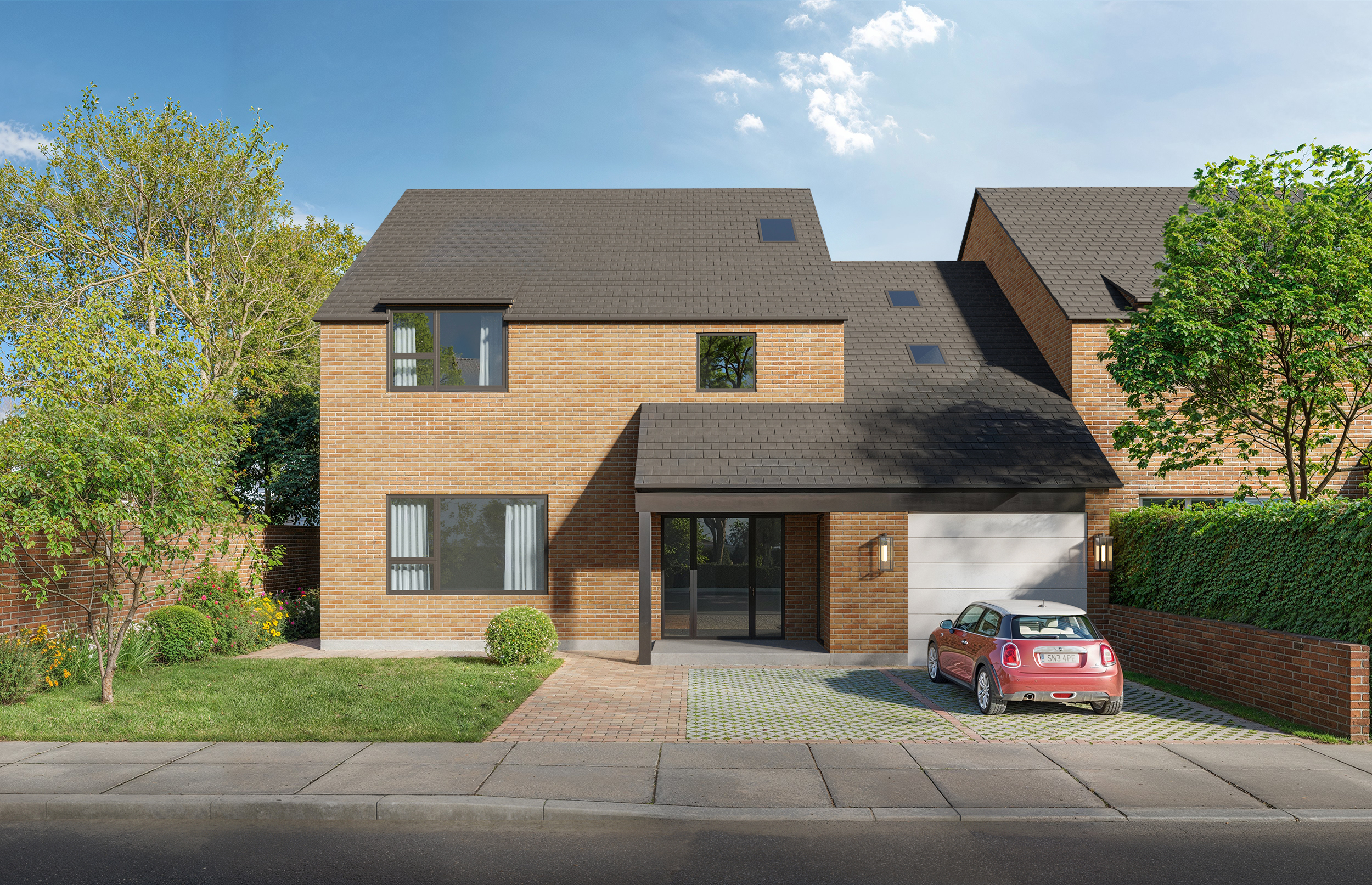 The modern Surrey house with a characteristic catslide roof got a makeover with a rear extension at ground and first floor inspired by the existing materials reintepreted with a contemporary twist.