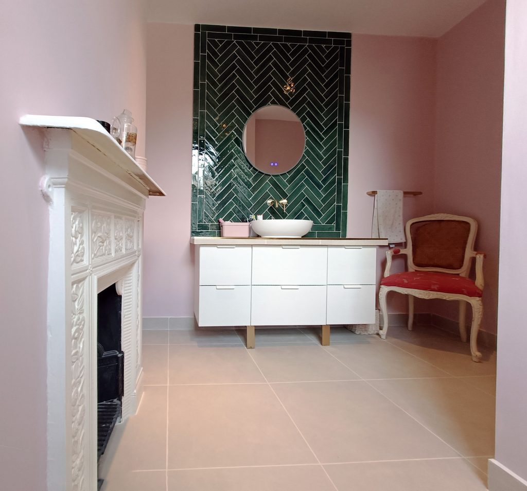 Tired of a small dull bathroom and a poorly functional spare room, for our client we proposed to merge the spaces resulting in a comfortable, bright, colorful and whimsical bathroom that introduced a new ritual of wellness in the dynamics of this hip family.